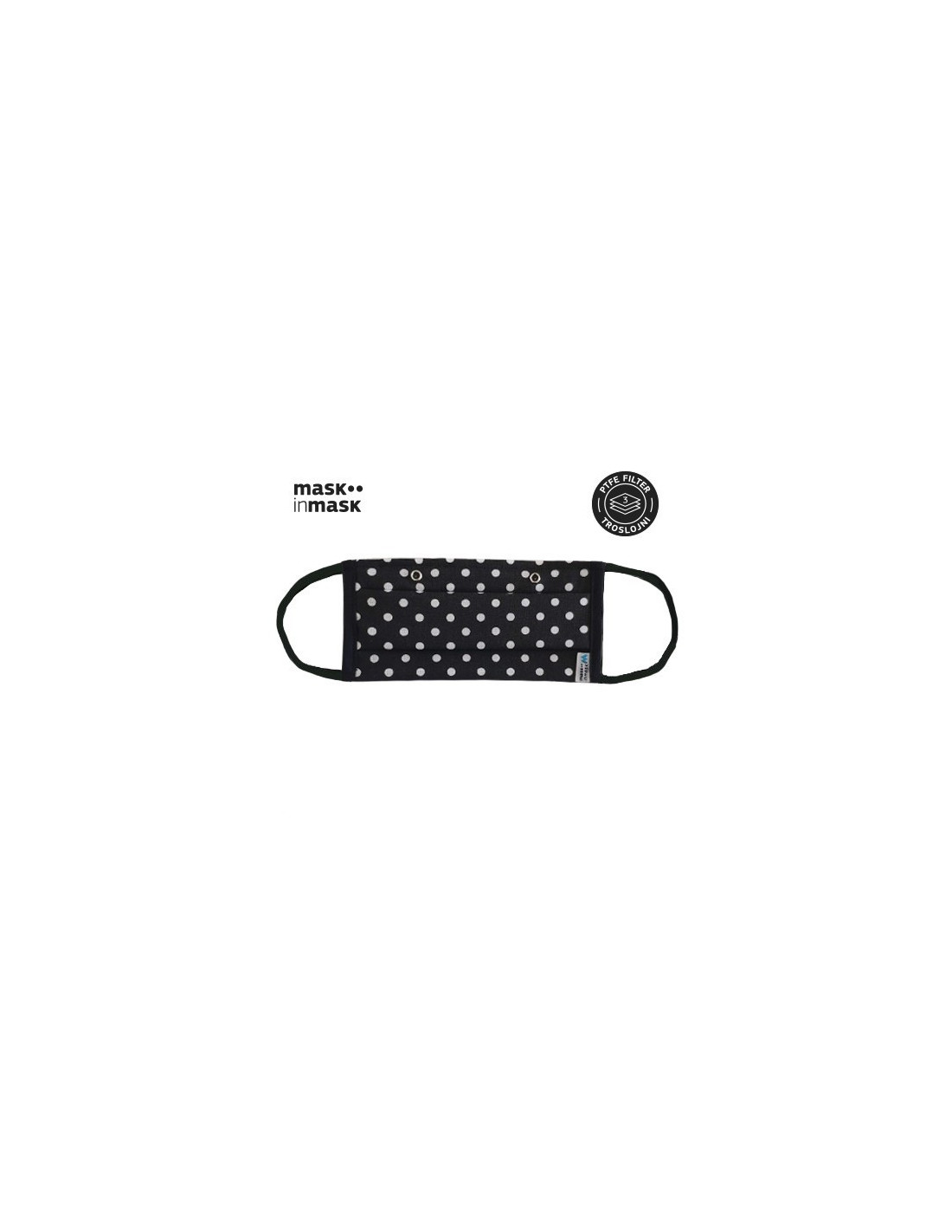 PTFE MASK in MASK, višekratna maska s troslojnim PTFE filterom, crna s bijelim točkicama