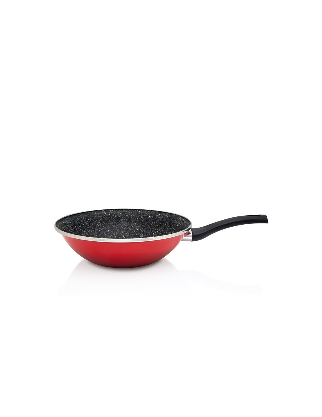 Promjer (cm): 26Zapremnina (7,5Osnovni materijal: čelikMaterijal spolja/unutra: emajl/neljepljivi PTFE premaz sa efektom granitaBez poklopcaBoja: crvenaOdržavanje: Ručno i strojno pranje