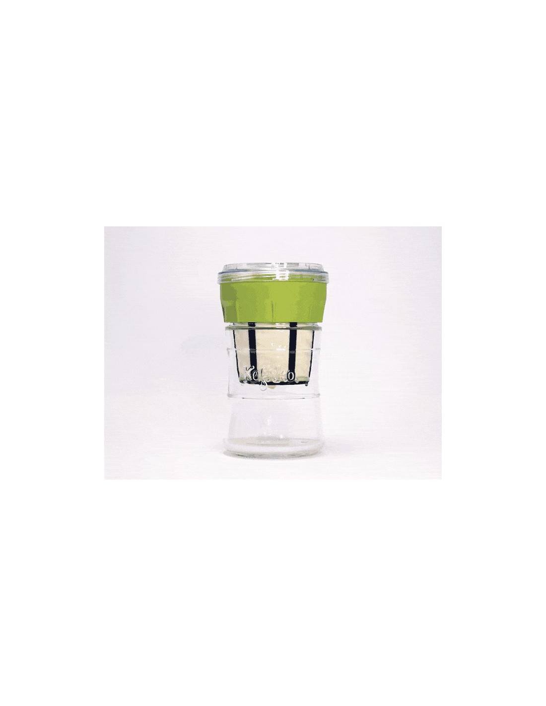 Kefirko set za sir je vrlo jednostavan - sastoji se od 4 dijela: poklopca, mrežaste košarice, plastičnog prstena i staklne posude koja zadržava ocijeđenu sirutku.