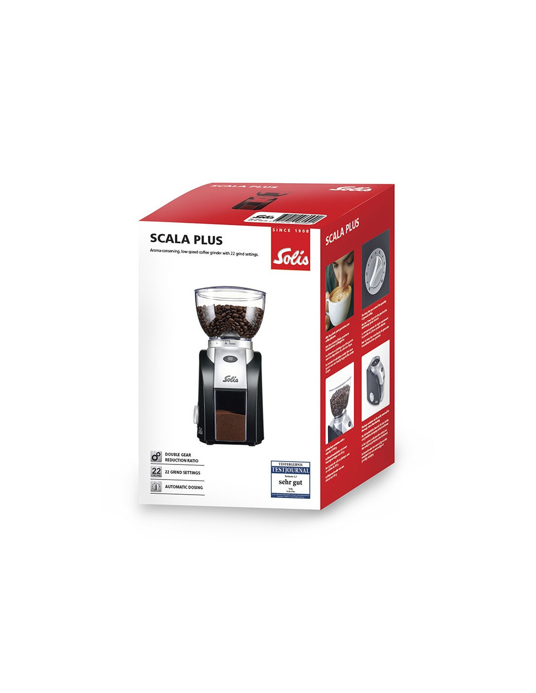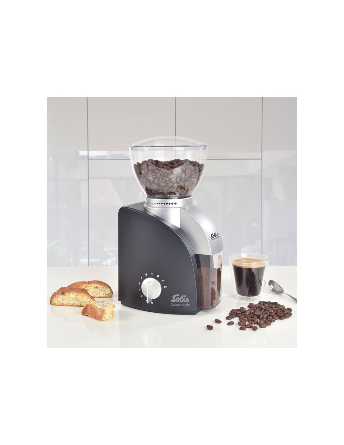 Prozirna posuda za kavu izrađena od SAN plastike prima do 250 grama zrna i može se ukloniti radi lakšeg čišćenja. Plastično kućište bez BPA opremljeno je praktičnim pretincem za spremanje i skrivanje kabela mlinca. Elektronički gumb za start/stop i neklizajuće noge osiguravaju udoban i siguran rad.